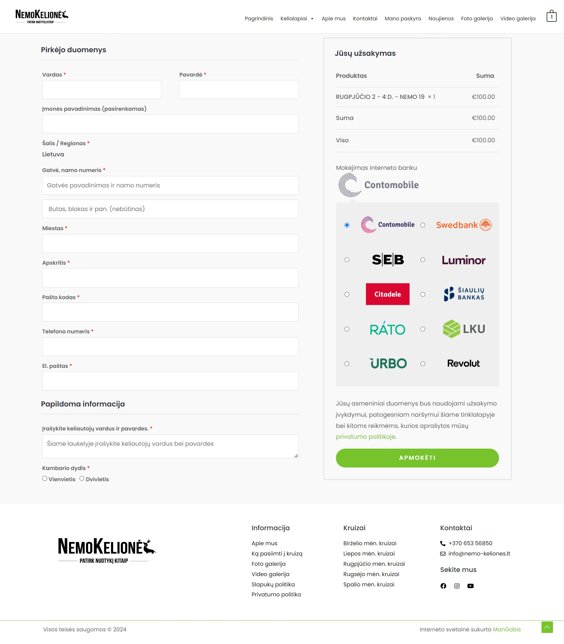 Inovatyvi el. parduotuvė, siūlanti kelialapius į išskirtinį kruizą rankų darbo plaustu Nemuno upe. Čia rasite išsamų vaizdo serialą, interaktyvią nuotraukų galeriją ir patogią kelialapių paiešką pagal trukmę, mėnesį ar šventes. Svetainėje gausu susisiekimo mygtukų bei užklausos formų, o saugūs mokėjimai užtikrina patikimą apsipirkimą. Puikus el. parduotuvių kūrimo pavyzdys!