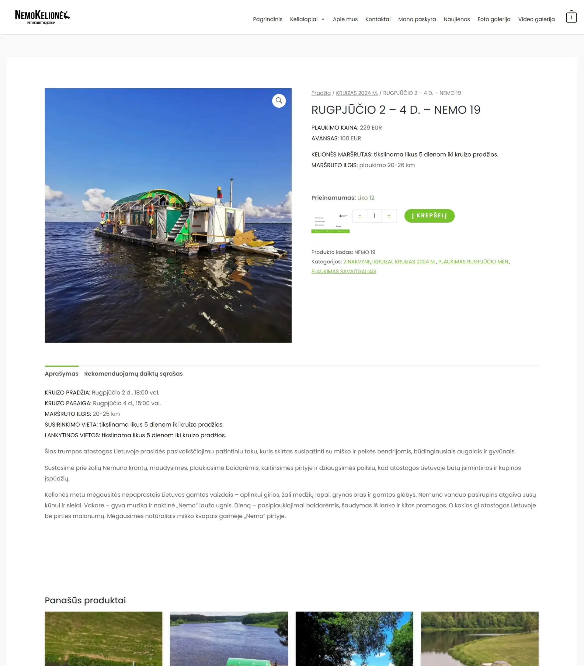 Didelės apimties el. parduotuvė, siūlanti kelialapius unikaliam kruizui rankų darbo plaustu Nemuno upe.