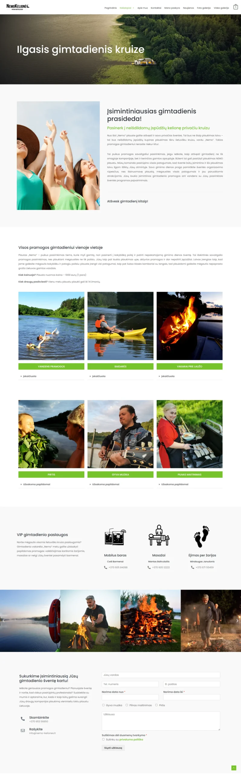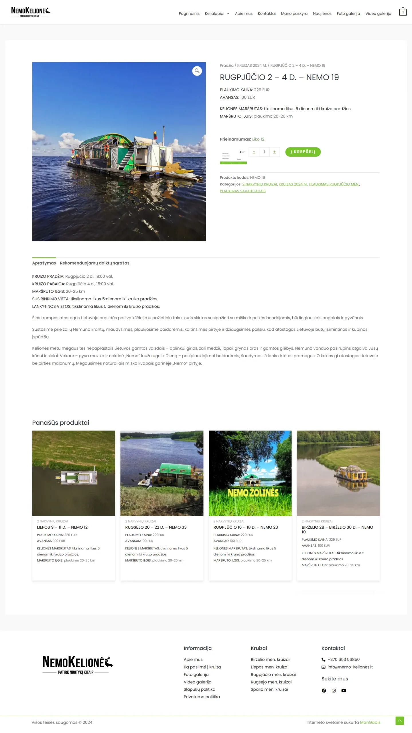Inovatyvi el. parduotuvė, siūlanti kelialapius į išskirtinį kruizą rankų darbo plaustu Nemuno upe. Čia rasite išsamų vaizdo serialą, interaktyvią nuotraukų galeriją ir patogią kelialapių paiešką pagal trukmę, mėnesį ar šventes. Svetainėje gausu susisiekimo mygtukų bei užklausos formų, o saugūs mokėjimai užtikrina patikimą apsipirkimą. Puikus el. parduotuvių kūrimo pavyzdys!